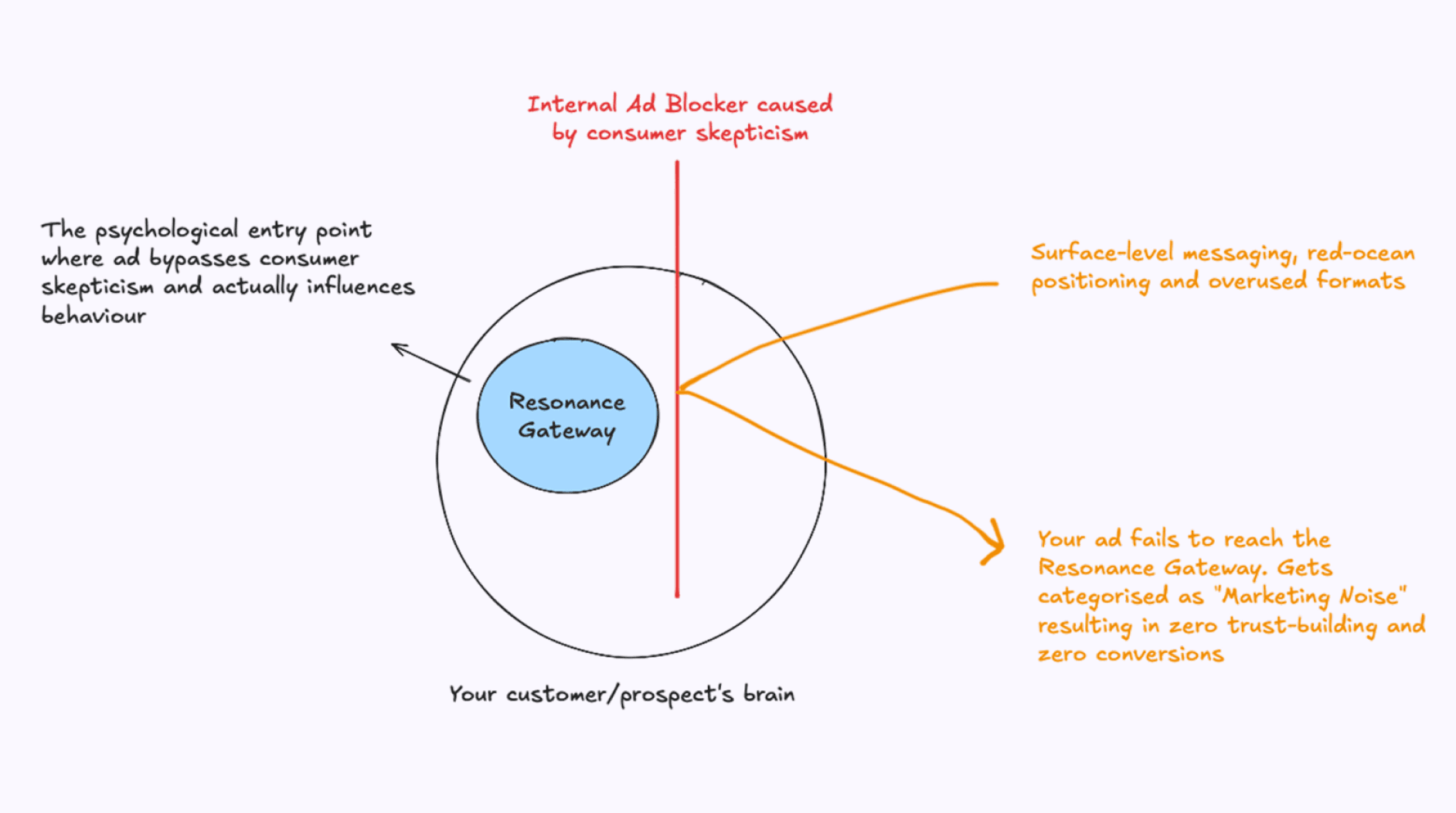 As a result, most of your ads never make it past what we call the Resonance Gateway - the psychological entry point where your ad actually influences behaviour.