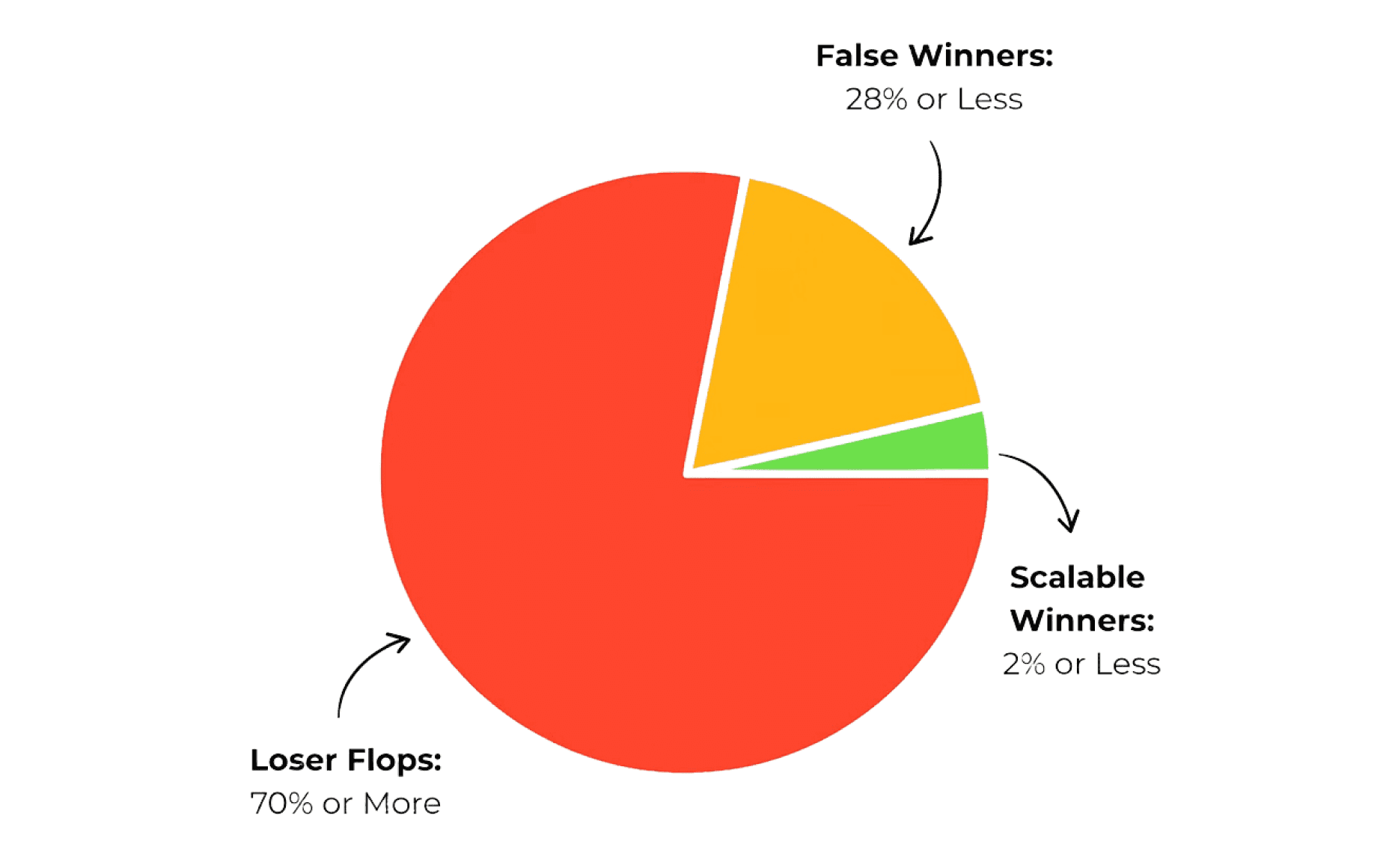 2) 28% or less False Winners that show promise at low spend, get you excited, but collapse the moment you try to scale them.